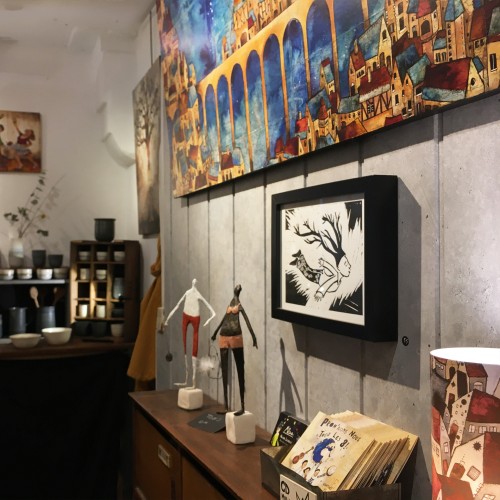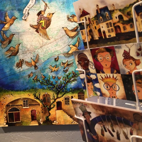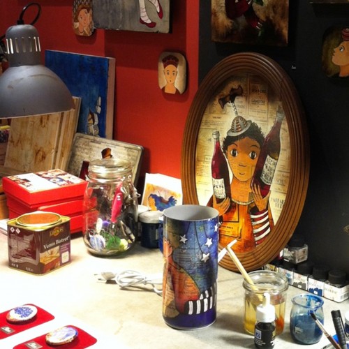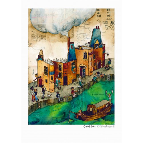 Ses encres glissent, s’accrochent et se fondent dans des écrits centenaires. Parfois, des notes de musique, des cartes à la géométrie variable, des mots, encore des mots... Ses couleurs sont chaleureuses, douces et lumineuses, tel du vitrail amenant cette transparence au papier.