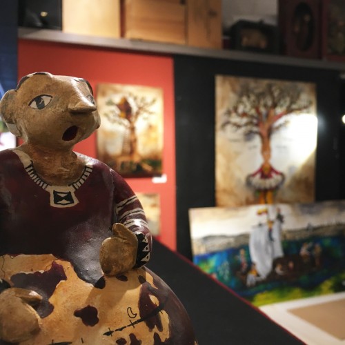 Des personnages en ressortent, telle une scène des années 30 où des danseurs côtoient des funambules.