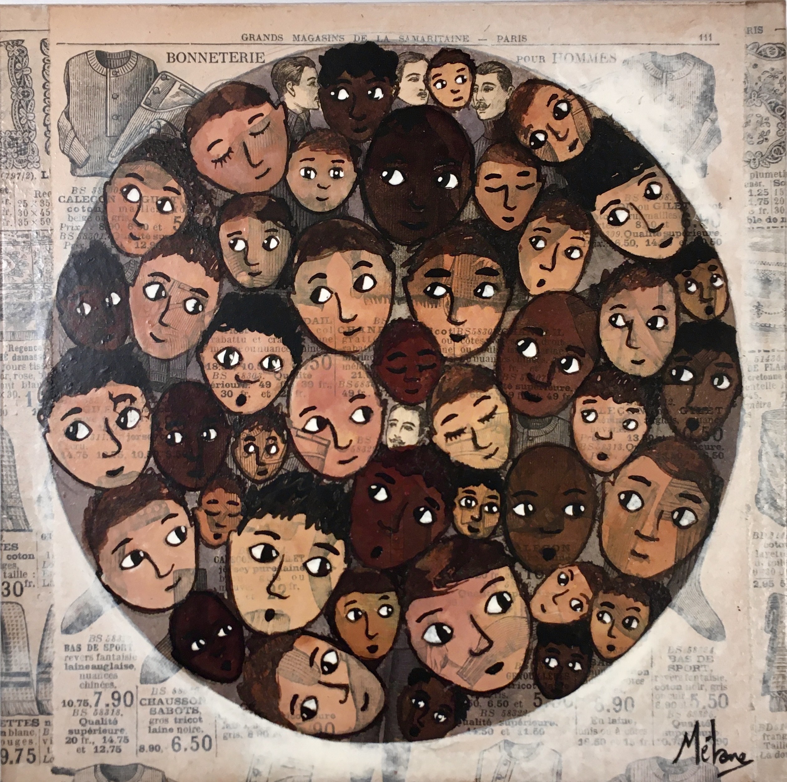 Encres sur papiers anciens marouflés sur bois