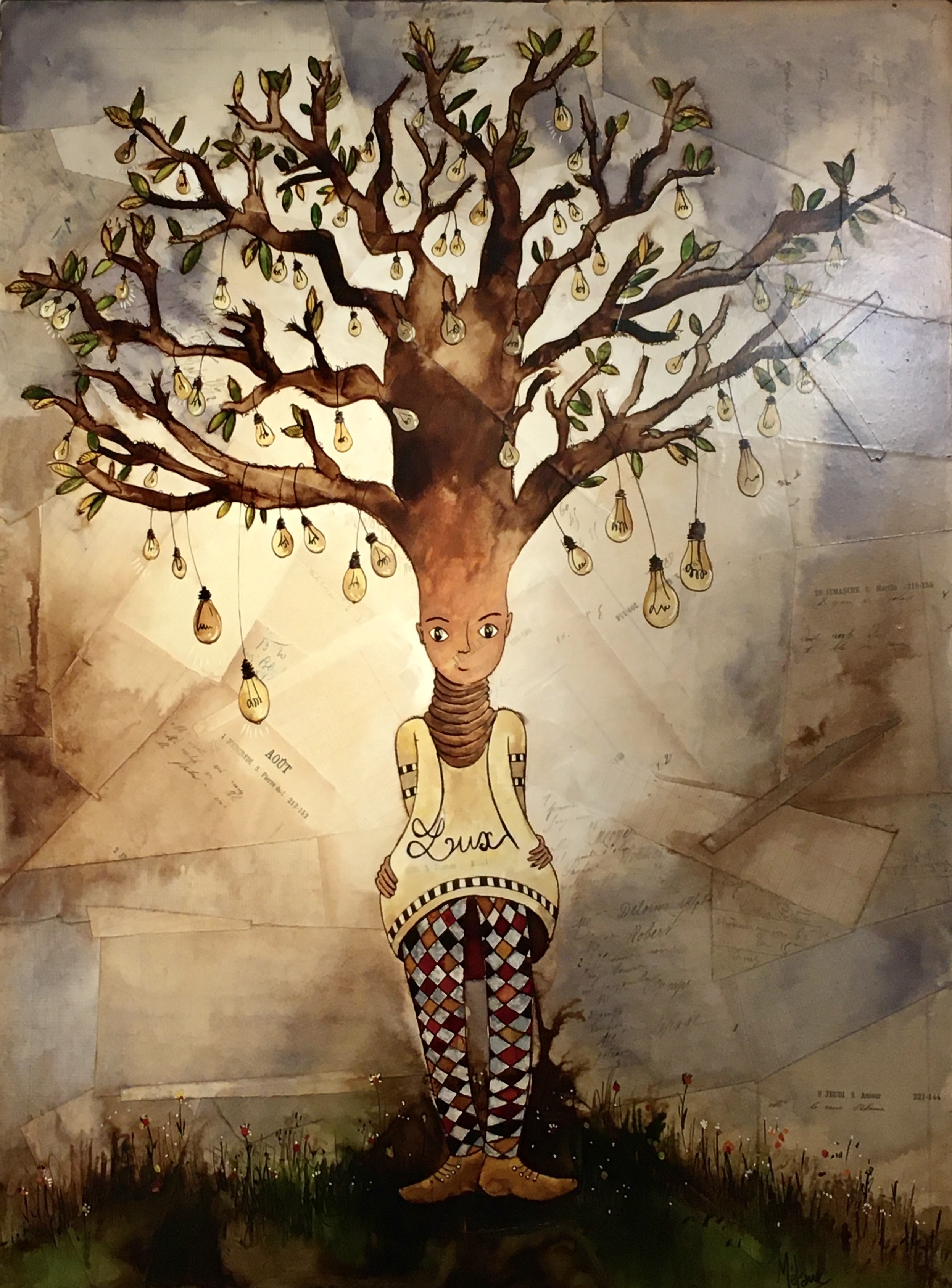 Encres sur papiers anciens marouflés sur bois