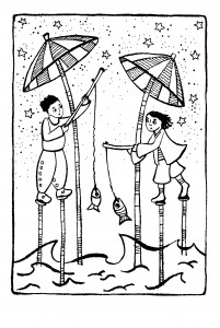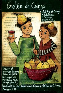 L’encre glisse, s’accroche et se fond dans des écrits centenaires. Des personnages en ressortent, telle une scène des années 30, les danseurs côtoient les funambules. Des bons vivants, fins gastronomes se fondent dans des recettes alléchantes. Quant aux enfants de nos campagnes, mémoire collective, ils remontent sur d’antiques chevaux de bois et nous laissent le véritable goût de la guimauve.